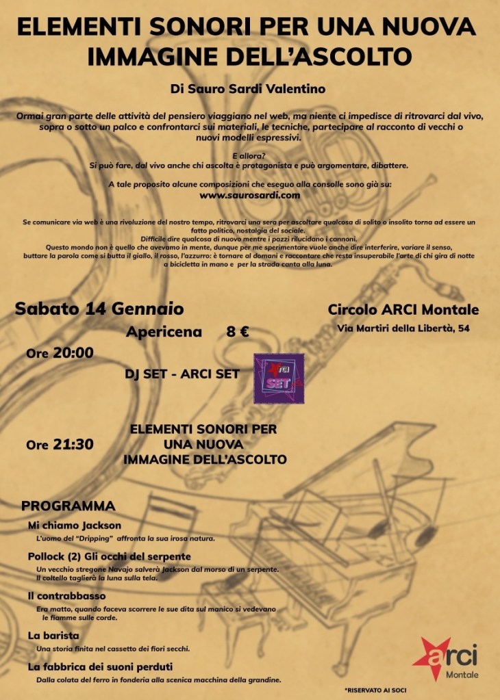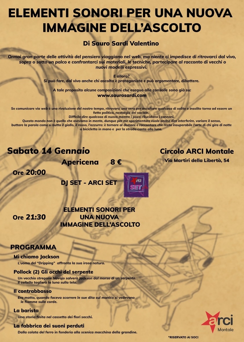Sabato 14 gennaio presso Circolo ARCI Montale , via Martiri della Libertà 54.